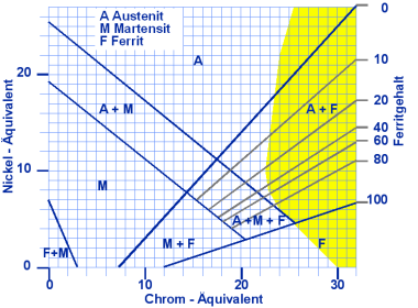 Das Schaeffler Diagramm erlaubt die ungefähre Mikrostruktur von Schweissnähten, die mit hochlegierten Stählen